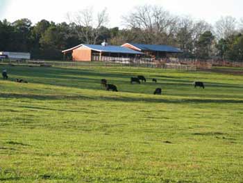 As I come around the bend in the road, there's a break in the trees and a green pasture dotted with black cows comes into view. Angus cattle and the sign announcing Dove Creek Farm, are a welcome sight. Brother and sister partners in the operation, Don Perkins and Pat Page greet me at the car door and welcome me to Pat's home.